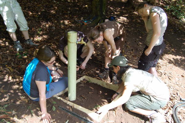 Shuttering is fitted to hold the concrete. The names of all those who have taken part in the project are written on the shuttering.